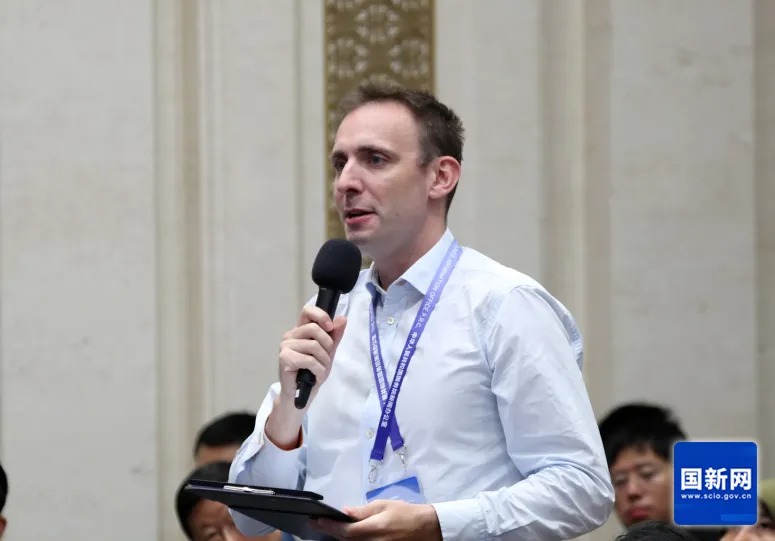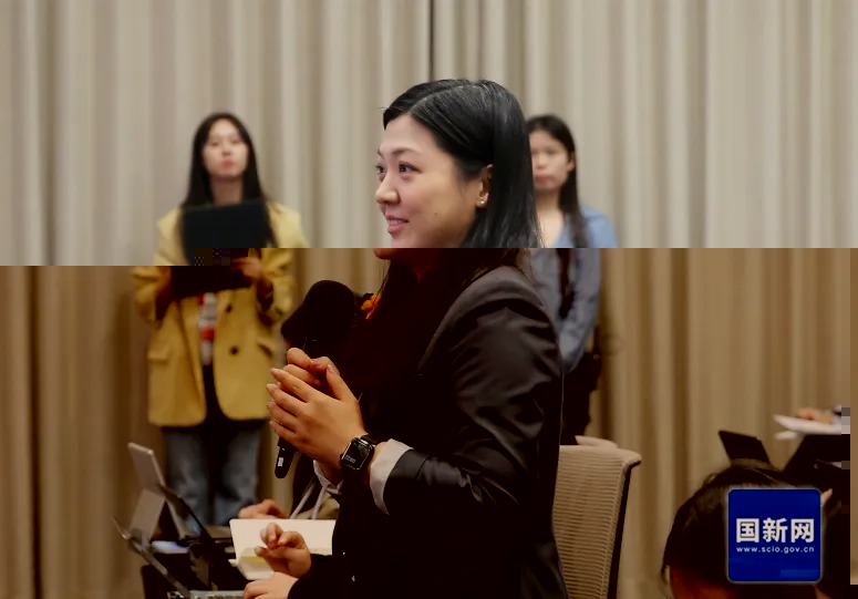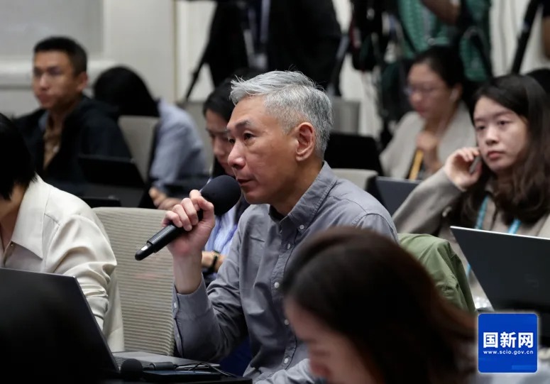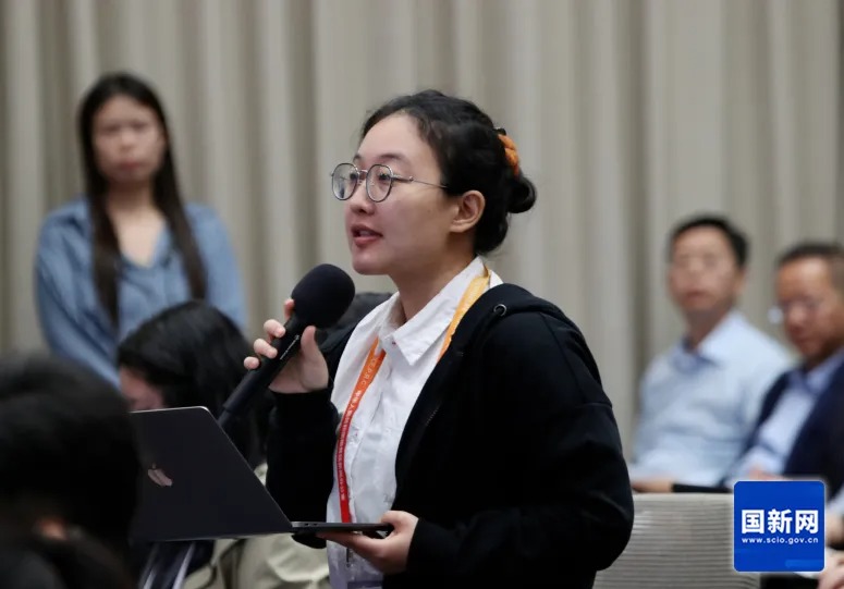 美国国际市场新闻社记者提问(赵一帆 摄)