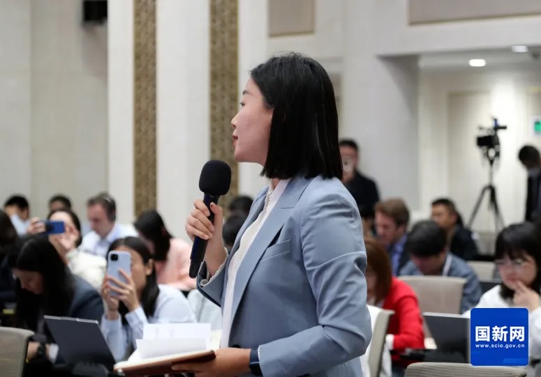 中央广播电视总台央视记者提问(赵一帆 摄)