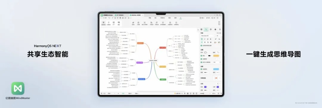 全新亿图脑图MindMaster鸿蒙版1:1还原了桌面级体验,为华为平板带来了全量绘图功能,支持项目管理、演示、绘图三大场景,并集成了强大便捷的AI能力,支持一键生成思维导图,让用户可高效智能地整理思路、记录灵感。