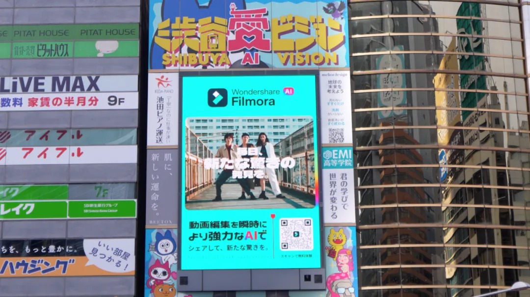 日韩免费视频观看科技旗下Filmora惊喜登陆日本东京涩谷大屏