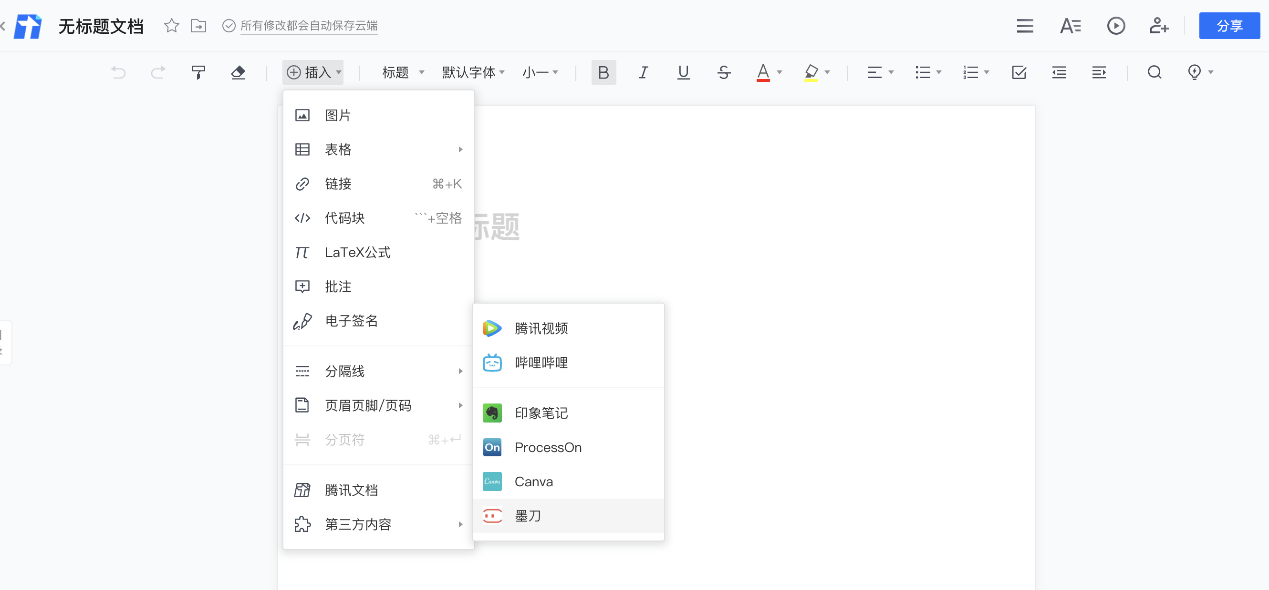 目前,墨刀已支持嵌入腾讯文档。用户只要简单操作四步——①登录墨刀(modao.cc),打开需要嵌入腾讯文档的项目,进入「项目编辑区」;②点击右上角「分享」-「复制」,复制源文件链接;③登录腾讯文档(docs.qq.com),打开需要插入原型图的在线文档;④点击「插入」-「第三方内容」-选择「墨刀」,粘贴刚刚复制的链接,即可将墨刀原型图轻松插入在腾讯文档中,避免在多平台来回横跳切换。与此同时,团队多个协作角色在墨刀原型中打点评论改动等,也将同步更新至文档中。