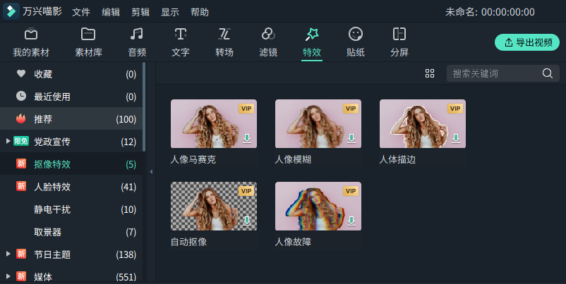 其中自动抠像特效可帮助用户轻松识别视频、图片内的人物,以人物轮廓范围为基础生成人像效果,便捷高效地应用于人像相关的视觉效果及少人、动作幅度不大的无前景人像抠图。