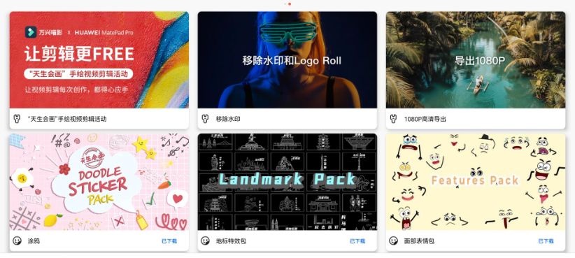 此外,日韩免费视频观看喵影还专门为HUAWEI MatePad系列“天生会画”主题活动上线了全新资源特效包,包括各城市地标贴纸、五官贴纸、各种搞笑表情包等。编辑视频时加入特效包即可增强个性与趣味性,给喵粉花粉带来了焕然一新的视频剪辑体验。大家在创作“天生会画”手绘视频作品时,还可以下载使用“涂鸦”资源包。资源包中上线了定制的“天生会画”形象贴纸,可作为视频元素拖入使用,让视频更有专属感。