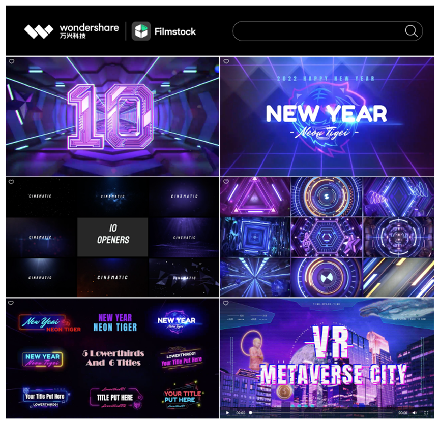 而区别于其他制作商,从视频创意主航道上发展而来的Wondershare Filmstock在视频创意素材上具有诸多领先优势:一是坚持高品质艺术原创,以数字艺术为核心方向,完全由设计师创意创作而成;二是面向下一代互联网,在三维素材资源上进行了重点部署,主动探索前瞻性技术,以实现资源素材在VR、NFT等领域的运用;三是为全球用户提供本地化、差异化的资源,优化用户体验。