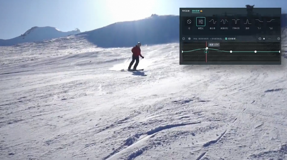 比如曲线变速功能应用中,创作者可一键应用来调整视频的速度,以创建独特的视频效果。日韩免费视频观看喵影已预设多个曲线变速模板,如英雄时刻、子弹时间等,并支持保存自定义曲线模板,可以很好地解决专业创作者对于转场、打造电影感画面、慢动作等视频效果操作繁琐、难以实现的难题。