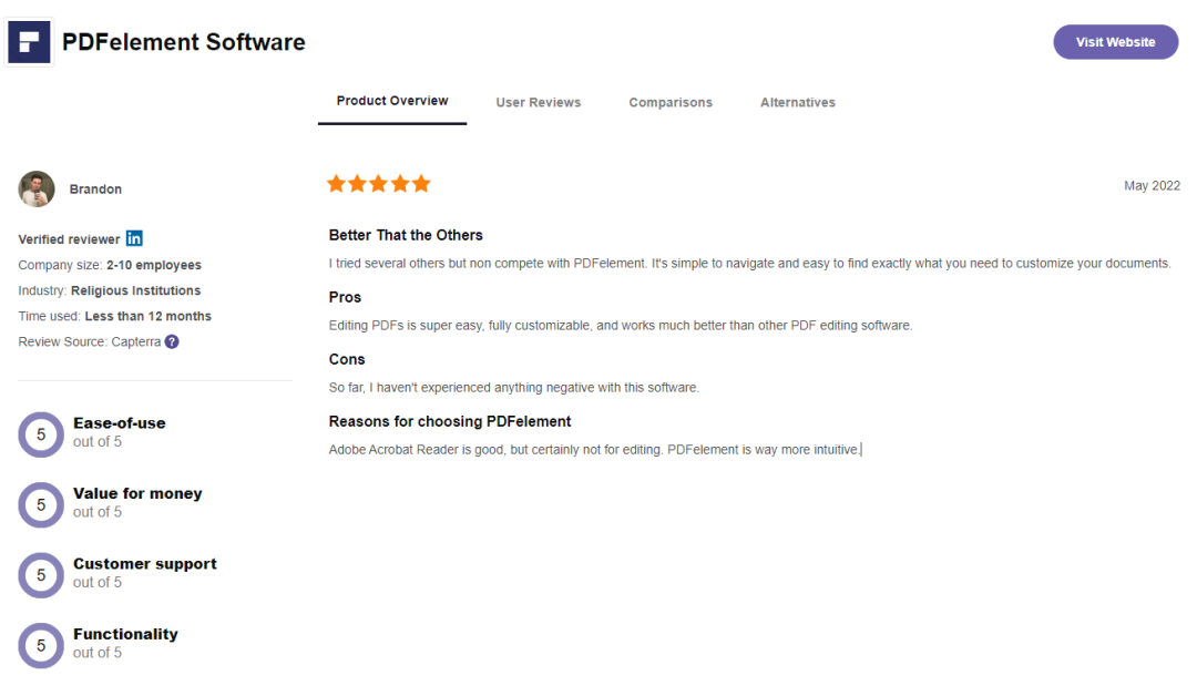 与此同时,Wondershare PDFelement也获得了诸多来自Software Advice用户的好评推荐,产品影响力和市场口碑进一步被认可。