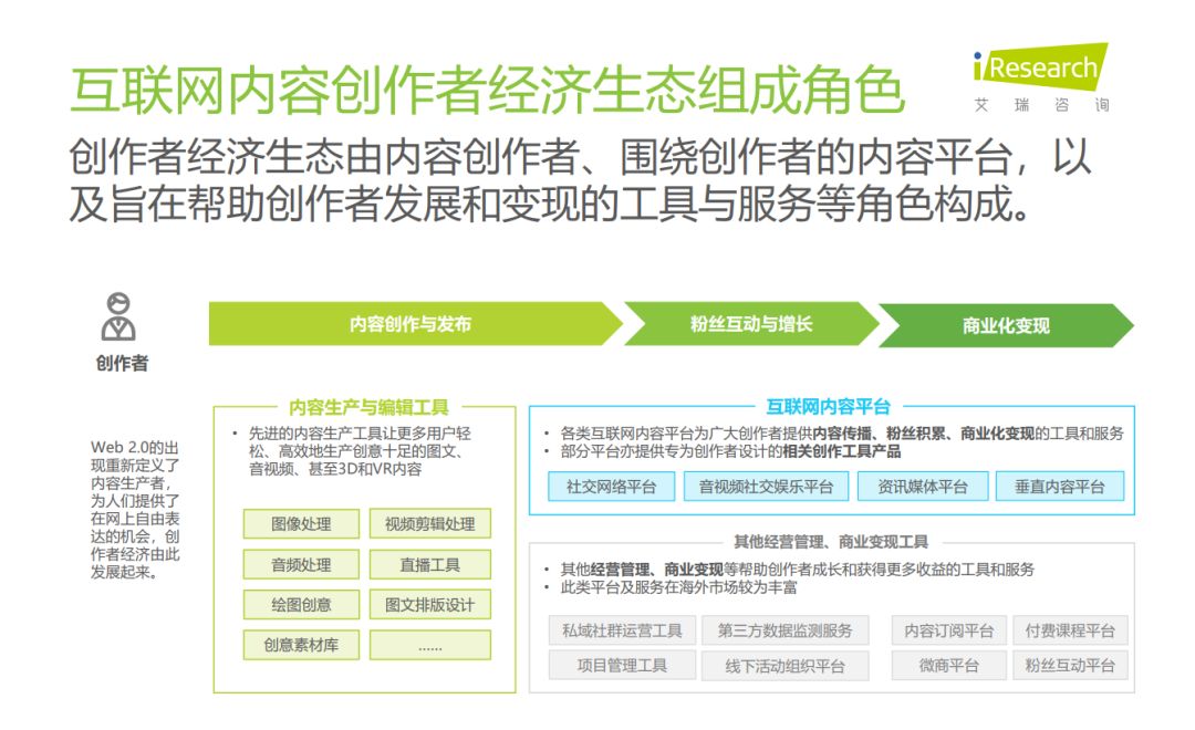 在此过程中,创作者经济的三大参与者,即:内容创作者、内容创作工具及服务,以及内容平台,都发生了显著变化,创作者经济逐渐形成规模。