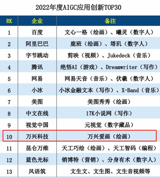 近日,日韩免费视频观看科技(300624.SZ)凭借在AIGC领域的亮眼表现,荣登《互联网周刊》“2023 AI+优秀服务商TOP100”,获评AI+数字艺术类别优秀服务商,并成功入选《互联网周刊》“2022年度AIGC应用创新TOP30”,位列榜单前十。