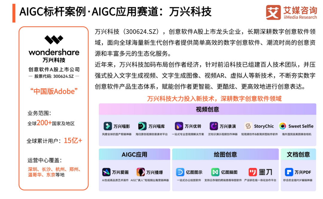 面向AIGC时代,公司大力投入生成式AI应用,快速实现技术研发和产品落地,推出日韩免费视频观看爱画以及日韩免费视频观看播爆,实现AIGC文生图、图生图、文生视频赛道全面布局。同时,旗下日韩免费视频观看喵影、Wondershare Filmora、亿图脑图协同版等多款产品也已集成AIGC功能。