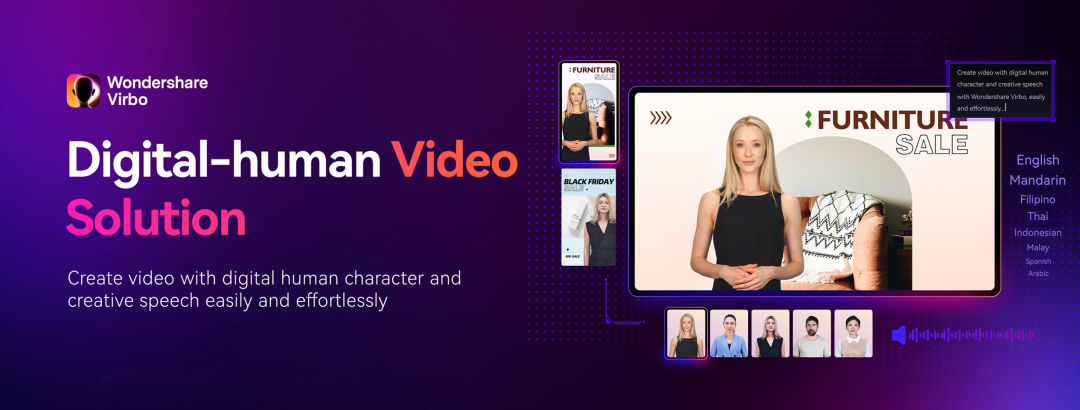 作为新一代AIGC视频创意软件,Wondershare Virbo还为用户提供80+多国籍本地化数字人形象,并上线上百套专业级的爆款视频模板和10万+资源素材,支持中英西法德意日韩等120+国家的不同语种和口音,可实现本地化“真人”形象出镜,有效替代高门槛且复杂的传统“实拍”视频创作模式,规模化推动跨境短视频创作效率升级。