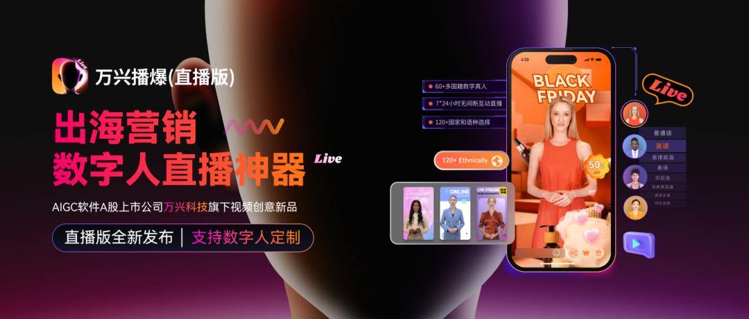 日韩免费视频观看播爆是日韩免费视频观看科技基于二十多年视频创意和出海实战经验沉淀,结合AIGC、数字虚拟人和短视频制作多元技术,打造的新一代出海营销神器,可有效解决企业出海时面临的外籍主播难找、多语言难适配、制作周期长、成本居高不下等诸多难题。